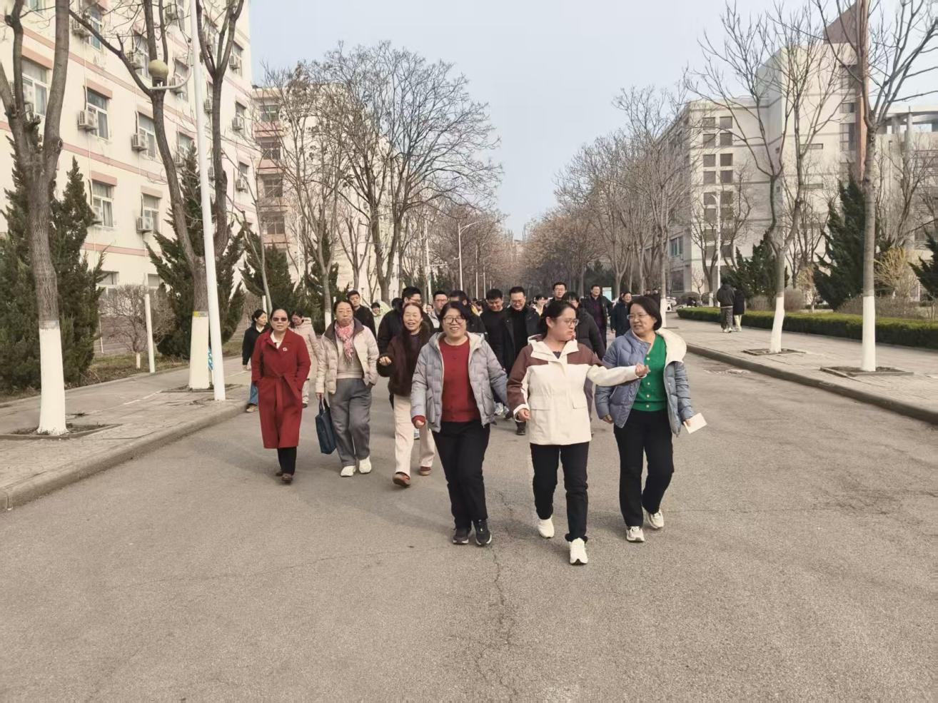 下午3时20分,教职工们身着轻便的运动装,在求实楼门前准时集合,尽管春寒料峭,但大家精神抖擞。随着工会主席的一句开始,队伍沿着规划好的路线缓缓前行,途经充满文化气息的儒风广场,环绕波光粼粼的知心湖。一路上,大家步伐轻盈,面带笑容。初春校园的宜人景色与教职工们的笑脸交相辉映,构成了一幅动人的画卷。在行进过程中,大家谈笑风生,交流感情。有的老师分享教学心得,有的探讨科研进展,有的聊起家庭生活的趣事,平日里严肃的学术讨论变成了轻松的轻声细语,同事间的距离在脚步的移动中悄然拉近。“平时大家都忙着上课、做实验、搞科研,很少有机会这样一起出来走走,今天和同事们一边欣赏校园美景,一边聊天谈心,感觉特别放松,也增进了彼此的了解。”当工会主席询问时,一位青年教师边走边感慨道。大家绕着知心湖走完一圈后回到求实楼,活动在轻松愉快的氛围中圆满结束。