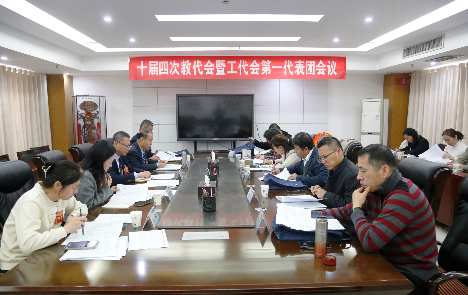 全体代表听取了十届三次“双代会”提案审查与处理和十届四次“双代会”提案征集情况的报告,经与会代表讨论、审议,会议表决通过了校长工作报告、财务工作报告、工会工作报告、学校学术委员会工作报告、《德州学院绩效工资分配暂行办法》《德州学院专业技术岗位设置、评聘与考核实施办法》的决议(草案),增补了第十届执行委员会委员。11个代表团分组讨论,代表们建言献策,纷纷表示,认真落实会议精神,以高度的责任感与紧迫感,脚踏实地做好全年各项工作。